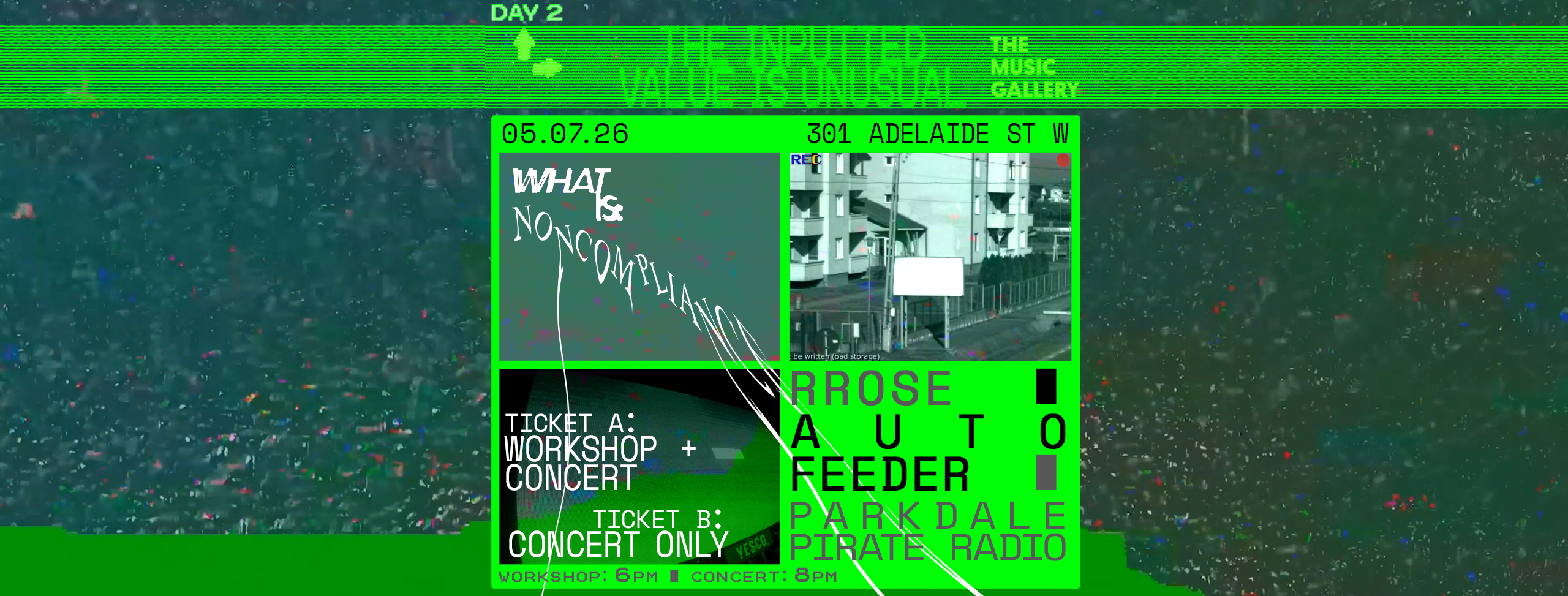 - THE PERFORMANCE at 8 PM: Auto Feeder and workshop participants perform their transmissions live, followed by a performance from underground worldwide techno legend and transdisciplinary artist Rrose which closes with a genre-twisting set based on work by James Tenney.